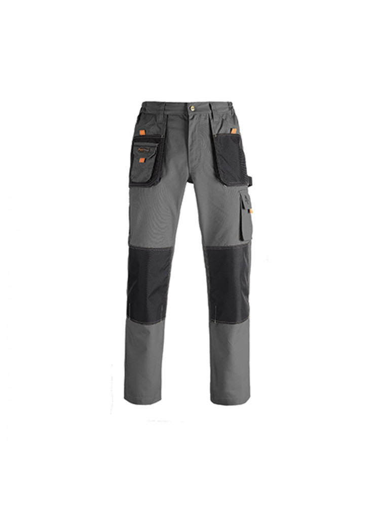 Pantalon de travail Smart Gris Kapriol en coton mélangé avec poches arrière à rabat et velcro, poches avant et poches pratiques pour les clous et bande latérale pour les marteaux.